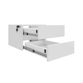 Equipado com corrediças telescópicas para um deslizamento suave e eficiente, você abrirá as gavetas com facilidade, sem travamentos. Além disso, um kit de chaves garante a segurança dos seus itens mais importantes, trancando as duas gavetas.