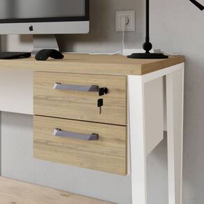 Gaveteiro Suspenso F5 Office com 2 gavetas e chave, ideal para organizar documentos e objetos com praticidade e segurança. Compacto e funcional, combina com mesas da linha F5, trazendo elegância e eficiência ao ambiente corporativo.