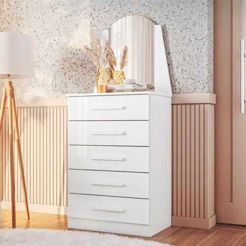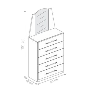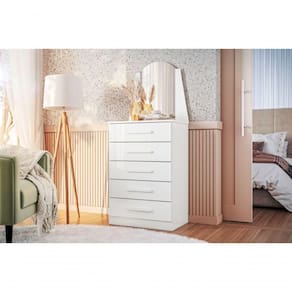 Dispõe de 5 gavetas, com profundidade excelente para acomodar todas as suas roupas e 1 espelho.