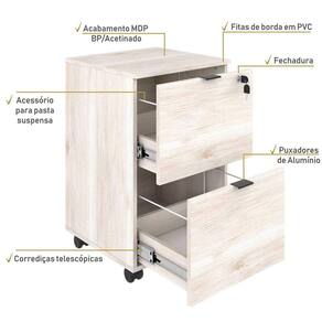 O gaveteiro volante KUGV42 tem um design diferenciado, possui 02 gavetas para pastas sendo 01 com chave, além dos puxadores de metal e rodízios. Pode ser utilizado em diversas composições com outros móveis, sendo perfeito para fazer parte do seu escritório ou sala. A linha Kuadra tem seu design com inspiração no estilo industrial, que remete muito a decoração usada nos lofts das grandes metrópoles nos anos 60 e 70. Harmonizando o metal e os tons de madeira, foram projetados móveis versáteis e com estilo, que podem compor ambientes flexíveis cheios de personalidade, perfeitos para você decorar sua casa ou seu trabalho, tendo um resultado que caminha do estilo rústico ao moderno. Suas estruturas são fabricadas em aço, com soldas suavizadas e pintura texturizada epóxi-pó, conta com pés niveladores de altura e parafusos na cor preta. Para os tampos são utilizados mdp-bp acetinado com fitas de borda em pvc, dando uma maior durabilidade ao seu móvel. Acabamento da Gaveta: BP Acetinado Complexidade da Montagem: Média: pode ser montado por mais de uma pessoa e/ou necessite de maior conhecimento para montagem Cor do Produto: Snow/Preto Ônix Cor Interna: Snow/Preto Ônix Escala de Brilho: Fosco Escala de Brilho da Gaveta: Fosco Gaveta com Chave: 01 Itens Inclusos: 01 Gaveteiro Volante com 02 Gavetas Linha ou Coleção: Kuadra Manual de Montagem e Instalação: https://product-hub-prd.madeiramadeira.com.br/564250/documents/25e19de8-b8f6-4de3-96cc-6e1707f984341c3af9a19562f3520539567376.pdf Material da Gaveta: MDP Material do Puxador da Gaveta: Metal Material Principal: MDP Necessita Montagem: Sim Peso: 17,29 kg Peso Máximo por Gaveta: 5 kg Possui Pés: Não Possui Portas: Não Possui Prateleiras: Não Recomendações de Uso, Manutenção e Limpeza: Para a limpeza, utilize flanela seca ou pano macio levemente umedecido em água. Utilize um pano seco em seguida. Evite contato com produtos químicos (solventes, thinner, acetona, etc) e não utilize nenhum tipo de esponja de aço. Rodízio com Trava: Não Sapatas Niveladoras: Não Sistema de Montagem: Parafusos e minifix Suporta Até (kg): 30 kg Tipo de Corrediça da Gaveta: Metálica Simples Tipo de Puxador da Gaveta: Externo Ean: 7908167226888