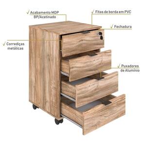 O gaveteiro volante KUGV44 tem um design diferenciado, possui 04 gavetas sendo 01 com chave além dos puxadores de metal e rodízios. Pode ser utilizado em diversas composições com outros móveis, sendo perfeito para fazer parte do seu escritório ou sala. A linha Kuadra tem seu design com inspiração no estilo industrial, que remete muito a decoração usada nos lofts das grandes metrópoles nos anos 60 e 70. Harmonizando o metal e os tons de madeira, foram projetados móveis versáteis e com estilo, que podem compor ambientes flexíveis cheios de personalidade, perfeitos para você decorar sua casa ou seu trabalho, tendo um resultado que caminha do estilo rústico ao moderno. Suas estruturas são fabricadas em aço, com soldas suavizadas e pintura texturizada epóxi-pó, conta com pés niveladores de altura e parafusos na cor preta. Para os tampos são utilizados mdp-bp acetinado com fitas de borda em pvc, dando uma maior durabilidade ao seu móvel. Acabamento da Gaveta: BP Acetinado Complexidade da Montagem: Média: pode ser montado por mais de uma pessoa e/ou necessite de maior conhecimento para montagem Cor do Produto: Carvalho/Preto Ônix Cor Interna: Carvalho/Preto Ônix Escala de Brilho: Fosco Escala de Brilho da Gaveta: Fosco Gaveta com Chave: 01 Itens Inclusos: 01 Gaveteiro Volante com 04 Gavetas Linha ou Coleção: Kuadra Manual de Montagem e Instalação: https://product-hub-prd.madeiramadeira.com.br/564236/documents/d03ba3bd-b89b-4491-920f-22a3c716d7e20bfa5f607b44e7520517567373.pdf Material da Gaveta: MDP Material do Puxador da Gaveta: Metal Material Principal: MDP Necessita Montagem: Sim Peso: 20,06 kg Peso Máximo por Gaveta: 5 kg Possui Pés: Não Possui Portas: Não Possui Prateleiras: Não Recomendações de Uso, Manutenção e Limpeza: Para a limpeza, utilize flanela seca ou pano macio levemente umedecido em água. Utilize um pano seco em seguida. Evite contato com produtos químicos (solventes, thinner, acetona, etc) e não utilize nenhum tipo de esponja de aço. Rodízio com Trava: Não Sapatas Niveladoras: Não Sistema de Montagem: Parafusos e minifix Suporta Até (kg): 30 kg Tipo de Corrediça da Gaveta: Metálica Simples Tipo de Puxador da Gaveta: Externo Ean: 7908167226741