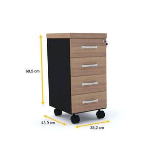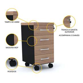 - Base com 4 rodízios pretos em poliestireno para a movimentação do gaveteiro, sendo os 2 rodízios dianteiros com sistema de travamento, para fixá-lo onde você desejar.