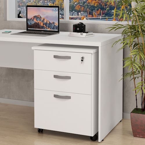 Gaveteiro Volante Para Escritório 2 Gavetas e Gaveta Para Pasta Branco