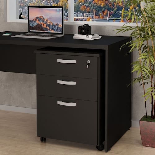 Gaveteiro Volante Para Escritório 2 Gavetas e Gaveta Para Pasta Preto