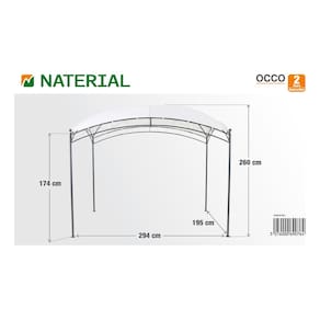 Com formato retangular e area de cobertura de 6 metros quadrados o produto apresenta dimensoes de 2 ponto 60 metros de altura 3 ponto 00 metros de largura e 2 ponto 00 metros de comprimento. Seu estilo tradicional e a cor branca permitem facil integracao com diversos ambientes externos.