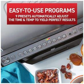 A poderosa grelha elétrica interna de 1800 watts cozinha os alimentos automaticamente com base na espessura do alimento e no programa selecionado 9 programas de confecção automática Hambúrguer, Aves, Sanduíches, Salsichas, Carne Vermelha, Peixe, Porco, Bacon e Marisco. Cabo termoplástico Luz indicadora de pré aquecimento , pronto luz indicadora e bipes sonoros para raro, médio e bem passado facilitam o monitoramento do progresso do cozimento Modo congelado para cozinhar alimentos congelados Modo manual com 4 ajustes de temperatura para cozinhar vegetais ou receitas pessoais. Comprimento do cabo de alimentação 0,8 m Painel de controle ergonômico na alça placas antiaderentes de alumínio fundido para liberação de alimentos sem esforço tabuleiros e pratos adequados para a máquina de lavar loiça livro de receitas incluído
