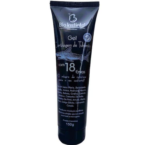 Gel Cartilagem de Tubarão Com 18 Ervas 150g Gel Cartilagem de Tubarão Com 18 Ervas 150g O gel massageador Cartilagem de Tubarão 18 ervas, com ação refrescante que promove sensação de conforto e relaxamento para as regiões lombares, pernas, pés e costas. Contém extratos vegetais associados à cartilagem de tubarão que melhoram a circulação e auxiliam na sensação de alívio da fadiga muscular. MODO DE USOAplicar sobre a pele com auxílio de massagens constantes até completa absorção. Não enxágue.