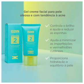 A Gel Creme Antiacne Antiacne ISDIN Acniben possui textura não oleosa que matifica a pele, auxilia na redução de acnes e controla o brilho. Promove hidratação e equilíbrio.