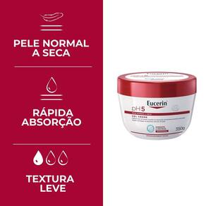 A pele normal a seca necessita de cuidados especiais. Eucerin pH5 Gel Creme hidrata por 24 horas, e ajuda a fortalecer a barreira protetora da pele, com muito rápida absorção e textura leve. Ajuda também a proteger as defesas naturais respeitando as características da pele, mantendo sua resistência. Oferece recuperação celular através da hidratação e reforço da barreira cutânea da pele em sinergia com óleo de semente de girassol e manteiga de kart é.
