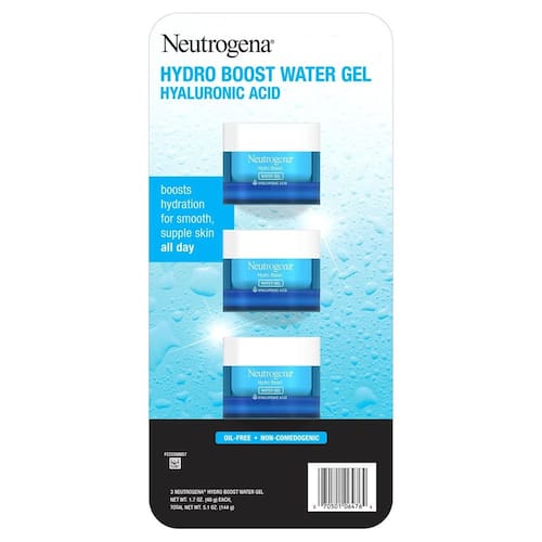 - Pacote com 3 frascos de 50 ml de gel de água hidratante Neutrogena Hydro Boost hidratante diário para rosto e pescoço com ácido hialurônico para hidratar a pele seca