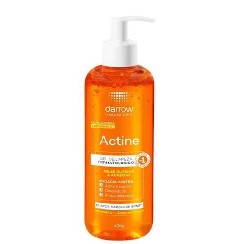 O ;Gel de Limpeza Facial Darrow Actine ;traz fórmula aliada a poderosa Vitamina C combinada com ativos dermatológicos antioleosidade e antiacne [Ácido salicílico 2% + P-refinyl + Lactato de mentila], que agem profundamente na limpeza da pele, reduzem a oleosidade após o uso, combate acne e cravos e minimiza poros dilatados, além de clarear visivelmente as marcas de acne.