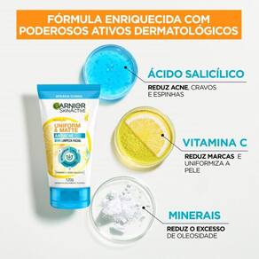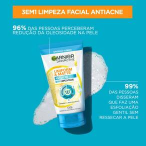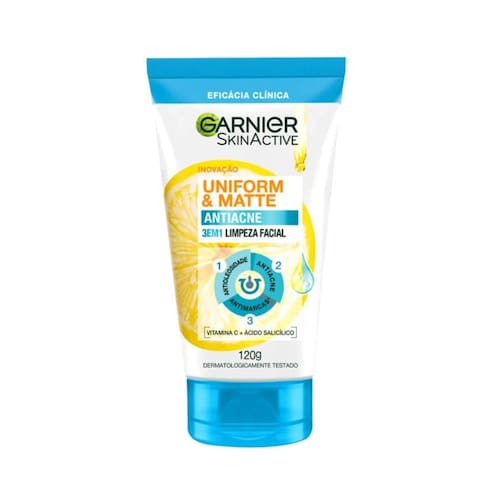 A Limpeza Facial 3 em 1 Garnier Uniform & Matte Antiacne 120g é a aliada perfeita para quem almeja uma pele uniforme e livre de imperfeições. Sua fórmula enriquecida com poderosos ativos, como o ácido salicílico, que possui ação antibacteriana, e a vitamina C, com seu efeito antioxidante, auxilia no combate a cravos e espinhas, reduzindo também marcas relacionadas a imperfeições. Sua textura suave desliza delicadamente sobre a pele, removendo impurezas, eliminando o excesso de oleosidade e retirando todos os resíduos de maquiagem, proporcionando ao seu rosto uma incrível sensação de frescor e pureza.