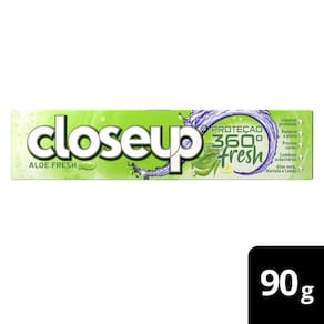 CloseUp Aloe Fresh proporciona até 12 horas* de hálito fresco e intenso. ALOE VERA EXTRATO DE LIMÃO E HORTELÃ. Poderosa fórmula com ação anti-bacteriana que proporciona uma explosão de hálito naturalmente fresco por até 12 horas e um sorriso branco radiante*. Hálito naturalmente fresco. Ajuda a eliminar até 99% das bactérias causadoras do mau hálito*. Fórmula com aloe vera, extrato de limão e hortelã.