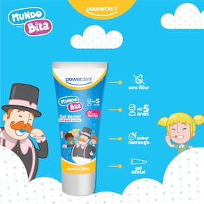 O Gel Dental Infantil Powerdent Mundo Bita foi desenvolvido com o objetivo de auxiliar os pais no estímulo ao hábito da escovação desde a infância. Possui sabor agradável e baixa abrasividade. Ajuda a combater a placa bacteriana sem agredir o esmalte dos dentes.