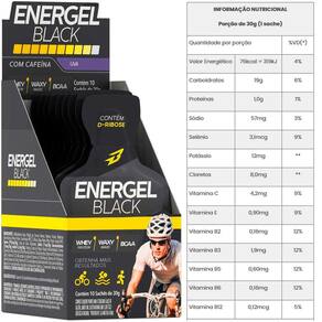 ENERGEL BLACK é formulado com um mix completo de carboidratos em suas diferentes formas, como a Palatinose, Frutose, D-Ribose e Waxy Maize, que garantem o aporte energético ideal para antes, durante e depois das atividades físicas.