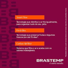 A Geladeira Brastemp Frost Free Inverse A+++ 447 litros conta com a tecnologia Smart Flow, que distribui o ar frio igualmente na geladeira. O modelo conta também com a gaveta Fresh Box e o Carbon Air Filter, além de tecnologias que mudam a dinâmica da sua casa.