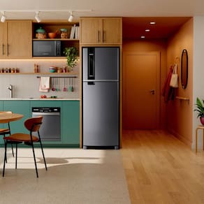 A Geladeira Brastemp Frost Free Duplex BRM46MK 385 litros com a Tecnologia Xpert Inverter economiza ate 33 de energia.