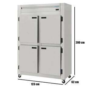 Características Principais Isolamento 100% em poliuretano Revestimento externo em Inox Escovado Revestimento interno em Galvanizado Sistema de ar forçado (Frost Free), ecológico e econômico Portas com sistema anti-transpirante e puxadores embutidos Prateleiras reguláveis pintadas em epóxi Rodízios para melhor deslocamento Controle de temperatura digital ou analógico