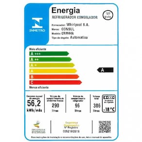 Características: Tipo de degelo - Frost free 2 portas Freezer superior Painel de controle interno Tipo de controle do painel - eletrônico Iluminação em led Função turbo 5 níveis de temperatura no refrigerador 3 níveis de temperatura do freezer Gavetão transparente de frutas e legumes Formas de gelo suspensas Espaço frio Porta ovos Registro Inmetro - 005218/2016