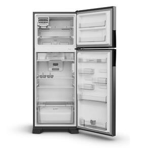 Cor Predominante: Inox Tipo Degelo: Frost Free Capacidade total liquida: 451L Número de portas: 2 Posição do freezer: Em cima Painel de controle: Interno Plugue e tomada: 10 A Classificação energética: A+ Nível de ruído (dBA): 42 Capacidade Líquida Refrigerador (l): 353 Capacidade Líquida Freezer (l): 98