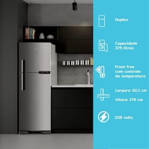 01 Refrigerador de 02 Portas Brastemp Frost Free com 375 Litros e Painel Eletrônico Inox - BRM44HK