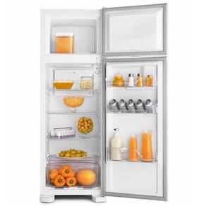 Especificações Técnicas: Tecnologia Cycle Defrost 2 Portas Prateleira da porta com trava para garrafas Prateleira na porta para garrafas de até 2,5 L Prateleiras no refrigerador aramadas e removíveis Gavetão transparente para frutas e verduras Prateleira porta latas Livre de CFC Puxador ergonômico embutido Controle de temperatura Interna Porta ovos para 12 unidades com cesta removível Pés com rodízios traseiros e niveladores dianteiros Consumo de 38,4 kWh Classificação energética A Capacidade do freezer 53 L Capacidade líquida do refrigerador 207 L Capacidade líquida total 260 L Capacidade bruta do refrigerador 211 L Capacidade bruta total 264 L