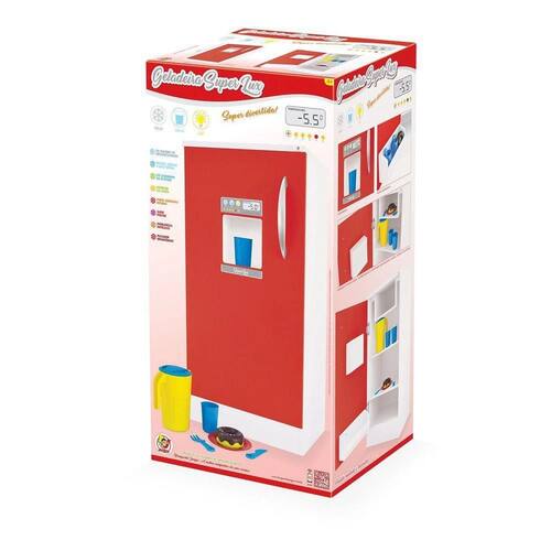 Geladeira Infantil Super Lux Em Madeira Junges Com Geladeira Super Lux Vermelha, sua criança irá estimular imaginação e se sentir dentro de uma cozinha de verdade. Ela é feita em MDF, tem prateleiras, freezer, dispenser, porta-garrafa e ainda acompanha jarra, copos e bolinhos coloridos para brincar. As divisórias são removíveis e tem uma grande espaço interno Idade indicada: 4+ anos - Dimensões do produto: 30x26x60 cm CxLxA - Dimensões da embalagem: 31x27x61 cm CxLxA - Peso do produto: 7,640 kg CE-BRI/INNAC 00671-001 Ean: 7897858315225