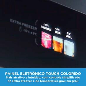 Novo painel touch colorido, o toque de modernidade para sua cozinha, é fácil de se utilizar, mude de forma independente a temperatura do refrigerador e freezer, entre outros ajustes.