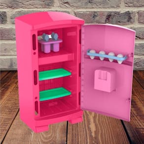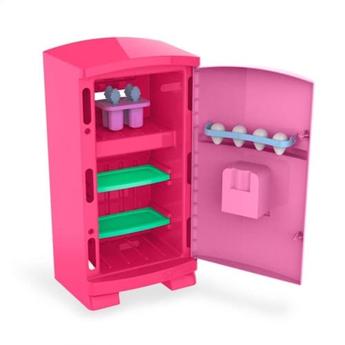 Complete a brincadeira de casinha da sua filha com a geladeira sweety fantasy da cardoso toys. Ela possui um dispenser lúdico na porta, prateleiras internas, porta-ovos com 4 ovos e fôrma para fazer picolé, que tornam a brincadeira ainda mais lúdica e divertida
