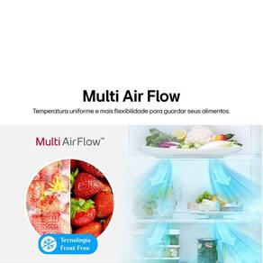 Com o uso de múltiplas saídas de ar distribuídas por toda a geladeira, você tem a garantia de uma temperatura uniforme por todo o compartimento interno. Com isso, você ganha flexibilidade para guardar seus alimentos onde preferir e otimizar o espaço interno.