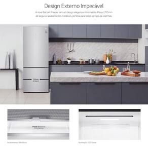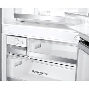 O Geladeira LG Smart Inverter Bottom Freezer 451 litros 110V GC-B659NSM, é parte essencial na rotina de uma casa e pensando em facilitar o seu dia dia, a LG apresenta a geladeira Bottom Freezer GC-B659NSM com capacidade líquida total de 451 litros. As três prateleiras ajustáveis de vidro temperado são mais resistentes e duráveis, já os seis cestos garantem melhor organização dos alimentos. O tipo Inverse, que possui o freezer na parte debaixo e a geladeira em cima, na cor aço escovado traz um design luxuoso e ergonômico. A iluminação interna em LED garante uma visão perfeita quando a geladeira está aberta. Para diminuir o esforço na hora de realizar a limpeza do produto, o refrigerador possui tecnologia frost free; Express Freezing que garante um congelamento mais rápido dos alimentos e Multi Air Flow que possibilita uma distribuição de ar homogênea. A nova Bottom LG Freezer, tem um design elegante e minimalista. Possui 705mm de largura, acabamentos metálicos, perfeita para todos os tipos de cozinhas. Linear Cooling, reduz a variação de temperatura da geladeira, mantendo o frescor dos alimentos por muito mais tempo. Saídas de ar localizadas no teto da geladeira, direcionam o ar frio para os itens armazenados na porta. O resfriamento da porta com a função DoorCooling paenas 15 segundos após o fechamento das portas, preservando melhor os alimentos e bebidas neste local. O compressor Linear, trabaha com velocidade variável, isso garante melhor consumo de energgiae maior conservação dos alimentos. O resultado é um produto muito mais silencioso e que economiza a conta de luz; tenha o controle da sua geladeira com o app Thinq. Adquira já a sua Geladeira LG Smart Inverter Bottom GC-B659NSM!