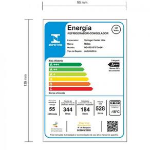Caracteristicas: Eficiencia energetica: Selo Procel A Capacidade: 528L Capacidade Freezer: 184L Capacidade Refrigerador: 344L Painel: Touch Funcoes: Turbo Freezer, Turbo Refrigerador, Trubo Freezer e Turbo Refrigerador e Ferias Material interno: PSAI Material externo: Aco galvanizado Numero de portas: 2 Gavetas Refrigerador: 2 Gavetas Freezer: 2 Prateleiras Refrigerador: 4 Prateleiras Freezer: 3 Gaveta para Frutas e Legumes: Sim Gaveta para Carnes: Sim Trava de seguranca: Sim Funcao Ferias: Sim Bandeja de ovos: Sim Ice Twist: Sim Dispenser: Nao Potencia de degelo: 240W Tipo de degelo: Automatico Agente expansor: Ciclopentano Gas Refrigerante: R600a Consumo aproximado de energia 110V: 55 kWh/mes Consumo aproximado de energia 220V: 50,2 kWh/mes Capacidade do Congelador: 10kg/24h Maxima Retencao sem Energia: 7h Frequencia: 60 Hz Tipo de Tomada: 10A