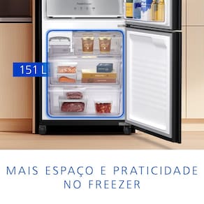Para uma rotina mais saudável, o Sistema Antibacteria Ag elimina 99,9% das bactérias e evita odores indesejados no interior do refrigerador. A organização é otimizada com 166 litros de capacidade no freezer em formato de gavetas e a Gaveta Fresh Zone, que mantém frutas e legumes frescos por muito mais tempo, proporcionando praticidade e conservação impecável dos seus alimentos.