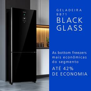 O design da geladeira BB71 Black Glass é a combinação perfeita para dar ainda mais estilo para a sua cozinha: sua porta de vidro preta possui acabamento espelhado e conta com um painel de led que acende com o toque.
