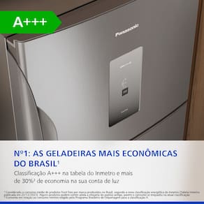 Mais economia e espaço para o seu dia a dia! Nº1: as geladeiras mais econômicas do BrasilCom o menor consumo de energia do Brasil, as geladeiras Panasonic têm classificação A+++ no Inmetro e garantem mais de 30% de economia na sua conta de luz Geladeira Livre de Bactérias com o Sistema Antibacteria AgFiltro de carbono com íons de prata que age no duto durante a circulação de ar, eliminando 99,9% das bactérias e odores indesejados. Mais espaço na geladeiraCom a geladeira Frost Free BT56, o espaço é sempre garantido. Com 435 litros de capacidade total e freezer que comporta até 102 litros, oferece praticidade e organização. Gaveta Fresh ZoneMais espaço para organizar frutas e legumes, mantendo-os frescos e saudáveis por mais tempo Compartimento ExtrafrioConserve carnes, frios e laticínios de forma eficaz