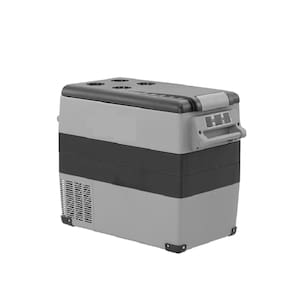 FICHA TÉCNICA Tipo: Portátil Dimensões Externas (cm) Alt:52,4 Larg:69 Prof:34,5 Cor: Cinza Peso: 13,8kg Potência: 60W Tensão: 12/24VCC ou 110/220V com fonte já inclusa Unidade Compressora: Compressor Hermético Gás Refrigerante: R134a ecológico Garantia: 12 meses Temperatura ajustável do Refrigerador: -20 a +20°C Laterais Gabinete Externo:Plástico Porta: Plástico Gabinete Interno: Plástico Isolamento Térmico - PU injetado expandido de alta densidade