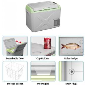RECURSO DO PRODUTO: Com a porta do refrigerador destacável, você pode inverter a tampa para alterar a direção da abertura. E a régua é esculpida na parte superior para fornecer medição. O suporte do copo pode impedir o derramamento de água. COMPARTIMENTO INNER: capacidade de 32 quartos, o freezer portátil está equipado com luz LED para fazer com que você pegue algo frio facilmente no cesto de zenamento, o bujão de drenagem inferior foi projetado para limpar sua geladeira. CONVENIENTE PARA VIAGEM: As alças embutidas são fáceis de mover. Nossa geladeira para carro Alpicool pode ser aplicada para caminhão, veículo, viagem de carro para trailers, pesca e outras atividades ao ar livre. PROTEÇÃO DE BATERIA DE CARRO: Com função de memória de temperatura e 3 níveis diferentes para proteção da bateria: Baixo, Médio e Alto para proteger a bateria do veículo sem escorrer. MANTENHA A REFRIGERAÇÃO E A FRESCA: 4 F 20 C a 68 F 20 Desempenho de resfriamento poderoso. Construção de propriedade de vedação confiável, alta e alta densidade Isolamento de espuma. Os resultados continuam esfriando o desempenho durante sua jornada.