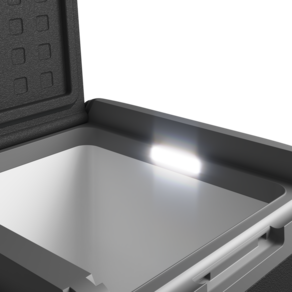 A Day2Day 50 Dark PRO combina capacidade com mobilidade: rodas e alça de transporte articulada. Traz iluminação interna, divisória removível, dreno de escoamento e controle de -20°C a +20°C no painel ou no app via Bluetooth, com modo ECO e MAX. Funciona em 12V/24V, com fonte 110/220V, tem IPX4, pontos laterais para cinta de fixação e 2 controladores independentes. Tensão: 12V e 24V, com fonte conversora 110/220V. Capacidade interna: Acomoda 73 latas (350 ml) e garrafa de 2 litros na vertical. Mobilidade: Possui rodas e alça de transporte. Controle de temperatura: -20°C a +20°C no painel ou via Bluetooth/app, com ECO e MAX. Organização interna: Iluminação interna + divisória removível. Dreno: Escoamento prático para limpeza. Fixação: Pontos laterais para cinta de fixação. Resistência IPX4: Proteção contra respingos. Detalhe técnico: Inclinação 30° e ruído 32 dB.