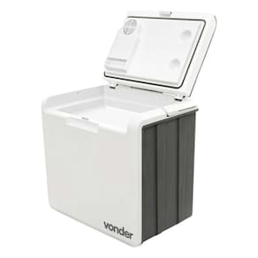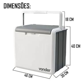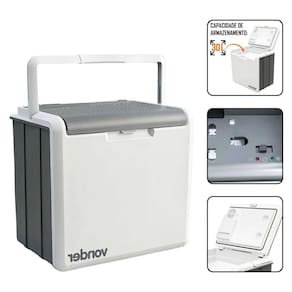 Geladeira/Refrigerador Automotivo Vonder 30 Litros 12V Praticidade, Mobilidade e Refrigeração em Qualquer Lugar!Leve mais conforto e comodidade para suas viagens com o Refrigerador Automotivo Vonder 30 Litros! Ideal para manter bebidas, alimentos e medicamentos na temperatura ideal enquanto você está na estrada, no camping, na praia ou no trabalho. Compacto, moderno e funcional, ele é o companheiro perfeito para quem busca refrigeração eficiente em movimento.Características TécnicasMarca: VonderModelo: Refrigerador Automotivo 30LCapacidade: 30 litrosTensão: 12V (tomada automotiva)Cor: Cinza com BrancoTipo: Elétrico automotivo portátilFunção: Refrigera e conserva alimentos e bebidasMaterial: Estrutura resistente e de fácil limpezaAlimentação: Conector de 12V para entrada veicular Diferenciais e Benefícios Capacidade ideal para armazenar até 30 litros de produtos Design moderno, leve e portátil fácil de transportar e guardar Mantém alimentos e bebidas frios por longos períodos Funciona diretamente no sistema elétrico do carro (12V) Ideal para viagens, passeios, pescarias, motorhomes, caminhões e campings Sistema de refrigeração eficiente com baixo consumo de energia Tampa com vedação reforçada, garantindo conservação máxima Conteúdo da Embalagem1 Geladeira/Refrigerador Automotivo Vonder 30L1 Cabo de alimentação 12V veicularManual de instruções