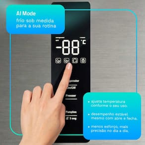 - AI Mode que ajusta temperatura de forma inteligente conforme o uso.