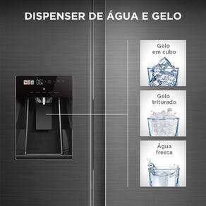 Tenha sempre água e gelo filtrados* ao seu alcance, direto da porta, com toda praticidade e sem necessidade de reabastecimento manuais. Conectado à rede hidráulica, a Geladeira Side by Side 570L Dispenser de Água e Gelo Midea oferece total comodidade no dia a dia. Com a Tecnologia Smart Sensor, a geladeira possui sensores inteligentes que auxiliam a manter a temperatura estável e oferecer uma melhor conservação dos alimentos. Além disso, oferece resfriamento rápido, baixo nível de ruído e maior economia de energia com a Tecnologia Inverter. Classificada como A no novo padrão do INMETRO, proporciona até 20% de economia em comparação ao padrão B. A conectividade via aplicativo SmartHome permite controlar funções, ajustar temperaturas, ativar modos como Turbo Freezer e Modo Compras, além de monitorar energia e gerenciar alimentos. Essa geladeira também possui comando de voz, sendo compatível com Alexa e Google Assitant. O Painel Touch Colorido também traz sofisticação e praticidade à sua cozinha, permitindo acesso fácil às funções e controle preciso da temperatura grau a grau. *Filtro com duração de até 6 meses ou 757 litros de água filtrada, prevalecendo o que ocorrer primeiro. ATENÇÃO: ESTA LOJA NÃO FATURA PARA CNPJ