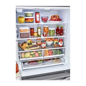 A Geladeira Smart LG French Door 695 Litros Inverse Inox 110V GM-B298NLNH é classificada como A+++ nos testes de certificação que avaliam o desempenho do produto em termos de economia de energia, garantindo a você um produto de alta performance e baixo consumo energético. Nota máxima na avaliação de eficiência energética dos testes INMETRO. Chega de se preocupar com o abre e fecha da geladeira. Através de uma saída de ar estrategicamente posicionada próxima à parte superior da porta, o resfriamento da geladeira acontece até 35% mais rápido, mantendo seus alimentos mais conservados, inclusive aqueles localizados na porta.