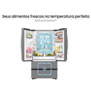 Seu sistema All Around Cooling garante uma distribuição uniforme de temperatura entre todos os compartimentos, mantendo seus alimentos frescos por mais tempo e preservando seu sabor e textura. Além disso, é possível reduzir até 15% do seu consumo de energia com o modo de inteligência artificial, onde a tecnologia dará uma sugestão para otimizar a velocidade do compressor e ciclo de degelo baseado no seu uso diário.