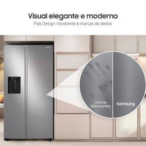 A Geladeira Samsung é referência de inovação e praticidade para o seu dia a dia. Com um design elegante em inox, esta geladeira enriquece esteticamente qualquer ambiente de cozinha. Seu acabamento também é resistente a impressões digitais, garantindo mais brilho e limpeza.
