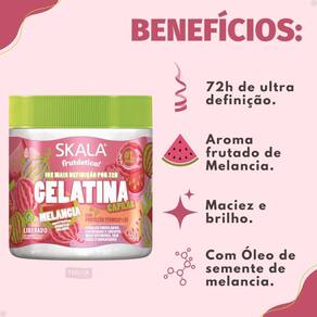 Para a felicidade dos Skalovers, Dona Skala ampliou a rotina de cuidados com a chegada dos finalizadores. A Gelatina Capilar Skala Frutástica Melancia chegou para dar um toque frutado e divertido à sua rotina de cuidados com os cabelos! Ideal para quem quer dar aquela definição especial aos fios e busca um produto com proteção térmica. Mergulhe na refrescância da melancia para revitalizar seus cachos, proporcionando nutrição, definição e um aroma irresistível! Em sua fórmula contém Extrato de Semente de Melancia, ideal para trazer maciez, brilho e força aos fios. Uma experiência sensorial única para deixar seus cachos radiantes e prontos para arrasar! Cabelos ondulados, cacheados e crespos mais definidos, sem frizz e hidratados. Além de definir, nutrir e proteger, a Gelatina Capilar Skala Frutástica Melancia é perfeita para quem busca um tratamento vegano e cruelty-free. Indicada para todos os tipos de curvaturas, garante cachos revitalizados e cheios de vida.