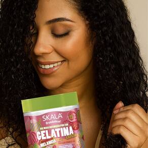 Experimente: Para manter os cachos mais definidos, umedeça levemente os cabelos e misture a quantidade desejada do Creme Para Pentear 3 em 1 Skala Frutástica Melancia com a Gelatina Capilar Skala Frutástica Melancia, finalize com um difusor ou deixe secar naturalmente.