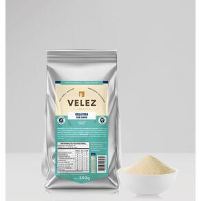 Gelatina em Pó - VELEZ Produto premium, puro, nível alimentício. Solúvel em agua a 35o. C. Gelatina é um ingrediente alimentar translúcido, incolor e insípido. Sua composição química é muito semelhante à do colágeno. É completamente digerível e contém 18 aminoácidos diferentes incluindo 8 dos 9 aminoácidos essenciais para nosso corpo, com exceção do triptofano. É especialmente rica em glicina, prolina e hidroxiprolina que juntas, representam quase 50% da composição da molécula. A gelatina é comumente Utilizado como agente gelificante, estabilizante, emulsionante, clarificante, formador de películas ou de espuma em alimentos, cápsulas de medicamentos e vitaminas, filmes e papéis fotográficos e cosméticos. Em alimentos tem suas principais aplicações em balas, gomas, marshmallows, sobremesa, iogurtes, sorvete, corbeturas e recheios, patês e requeijões e outros. Ingrediente natural e versátil que permite a criação de produtos clean label com cor, sabor e odor neutros . Usos : Em sobremesas, bolos, doces e confeitos . Espessante em diversos preparos como coberturas e recheios. Clarificante para sucos e cerveja artesanal . Na nutrição , como suplemento rico em colágeno, fortalecimento de unhas, cartilagens, cabelo . Rico em proteinas. Peso: 500g Origem : Nacional