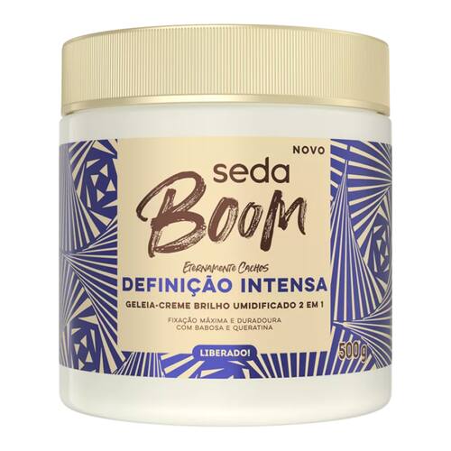 A Geleia Creme 2 em 1 Seda Boom Definição Intensa, que possui alta fixação com ação 2 em 1: hidrata como creme de pentear e define como uma geleia, criando um efeito de brilho umidificado