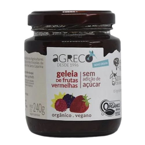A Geleia de Frutas Vermelhas Orgânica Sem Adição de Açúcar Agreco é feita a partir de frutas selecionadas e certificadas. Não leve açúcar em sua composição, sendo adoçada com suco de maçã.