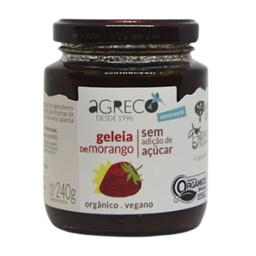 A Geleia de Morango Orgânica Sem Adição de Açúcar Agreco é feita a partir de frutas selecionadas e certificadas. Não leve açúcar em sua composição, sendo adoçada com suco de maçã.